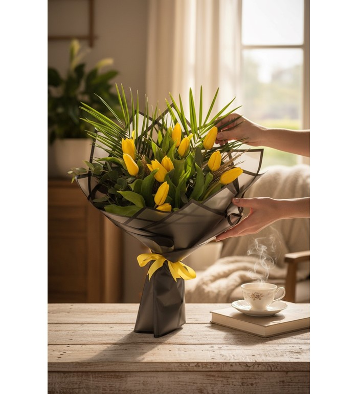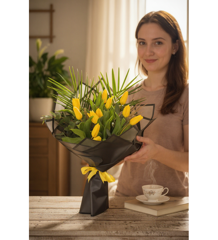 10 adet taze sarı laleden özenle hazırlanmış bu özel buket; mutluluk, neşe ve içtenlik dolu duyguları ifade etmenin en zarif yollarından biridir. Doğum günü, teşekkür hediyesi, yeni başlangıç kutlamaları veya sadece gülümsetmek istediğiniz bir an için mükemmel bir seçimdir.