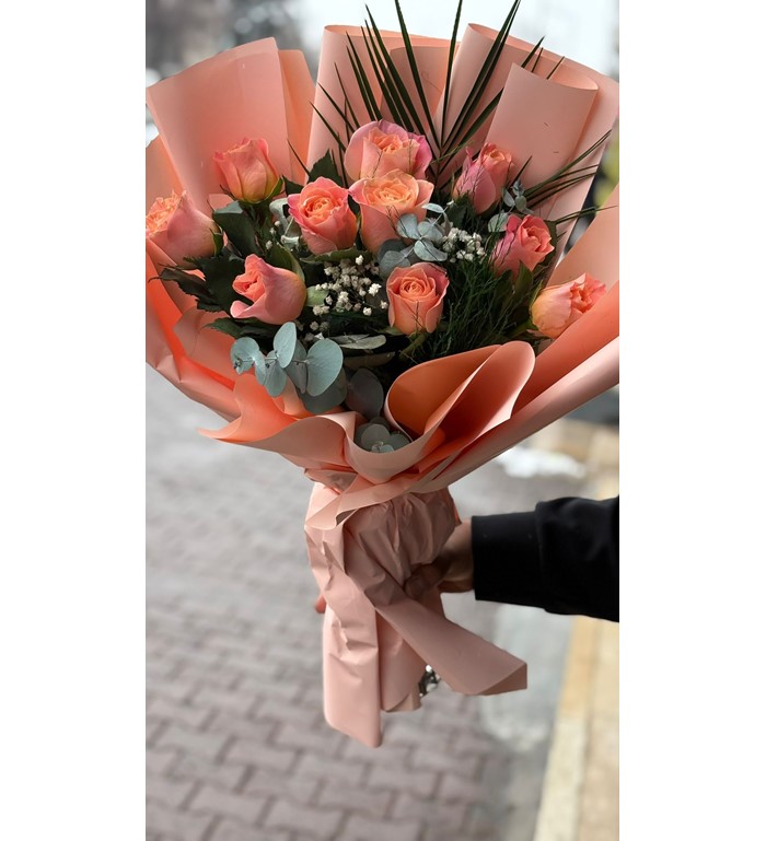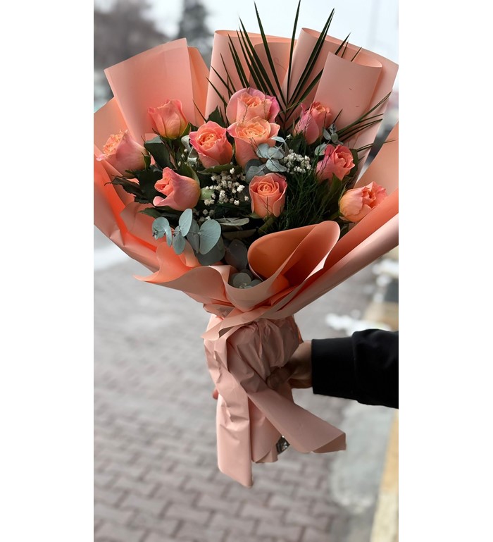 Yumuşak somon tonlarının romantik asaletiyle hazırlanan bu özel buket, 10 adet ithal somon gülün kusursuz uyumunu bir araya getirir. Ne fazla gösterişli ne de sade; tam kararında bir şıklık sunar. Sevgi, teşekkür ya da özel bir anı taçlandırmak için güçlü ama incelikli bir tercih.