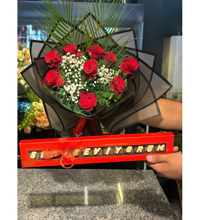 Aşkınızı ifade etmenin en özel yollarından biri: 10 adet taptaze kırmızı gül ve “Seni Seviyorum” yazılı çikolata ile hazırlanan bu zarif aranjman, duygularınıza anlam katıyor. Kayseri çiçek siparişlerinizde en çok tercih edilen romantik kombinasyonlardan biri olan bu ürün, sevdiğiniz kişiye hem görsel hem de tatlı bir sürpriz yapmanın en etkili hali.