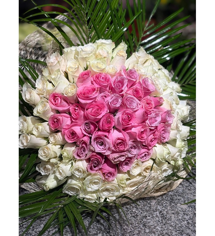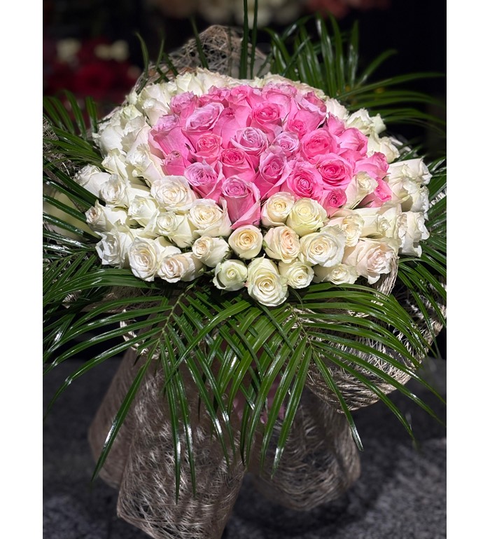 101 adet pembe ve beyaz gül ile hazırlanan bu buket, zarafetin ve duyguların mükemmel birleşimidir. Pembe güller sevgi ve samimiyeti temsil ederken, beyaz güller saflık ve temizliği simgeler. Bir araya geldiklerinde ortaya çıkan bu büyük ve etkileyici buket, sevgiyi ve mutluluğu en güzel şekilde ifade etmenin ideal yoludur. Hem romantik hem de özel günlerde kullanışlı olan bu buket, doğum günleri, yıldönümleri, tebrikler veya sadece özel bir an için mükemmel bir hediye seçeneği.