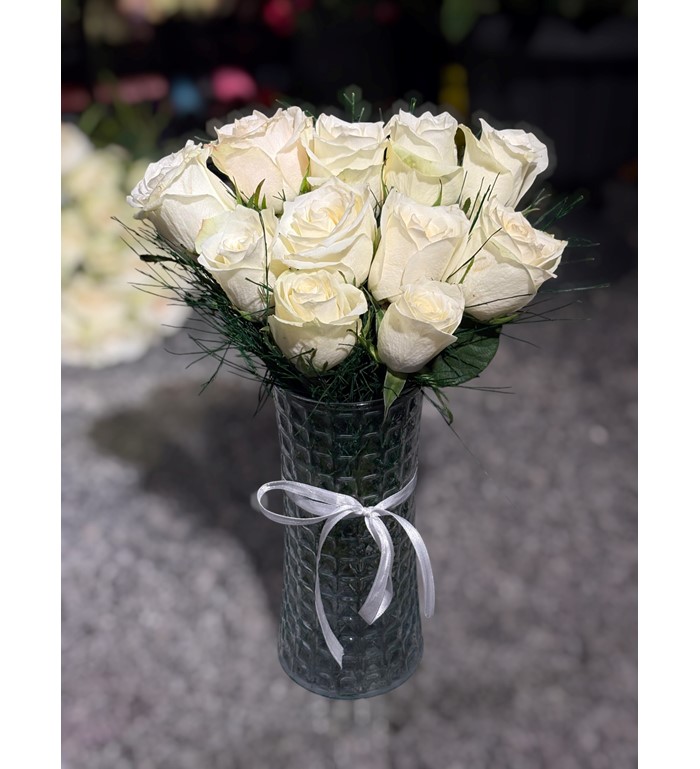 Beyaz güllerin zarif ve anlam dolu güzelliği, bu özel tasarımda 11 adet olarak bir araya geliyor. Beyaz güller, saflığı, masumiyeti ve içtenliği simgeler. 11 beyaz gül, derin bir sevgi ve bağlılık anlamına gelir. Bu özel aranjman, duygularınızı zarif ve sade bir şekilde ifade etmenin en etkileyici yoludur.
