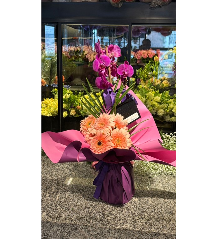 2’li Mor Orkide ve Gerbera Çiçeği Aranjmanı Mor Paket | Kayseri Çiçek Evi