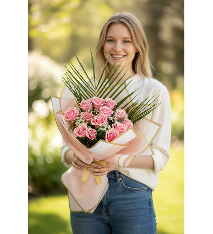 Zarafeti ve romantik duruşu ile öne çıkan 20 adet ithal pembe gül, uyumlu pembe paketleme ile şık bir buket haline getirilir. İthal güllerin canlı rengi ve tazeliği sayesinde özel anlarınıza estetik ve duygusal bir dokunuş katar.