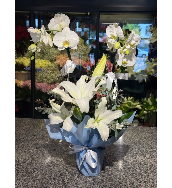 Zarafetin ve asaletin simgesi: 2'li Beyaz Orkide Aranjmanı. İki köklü beyaz orkidenin estetik bir şekilde bir araya getirildiği bu özel tasarım, ev ve ofis dekorasyonlarında şıklığı tamamlar. Sevdiklerinize doğum günü, yıl dönümü, yeni iş tebriği veya “Seni düşünüyorum” demek için harika bir seçimdir. Uzun ömürlü ve gösterişli çiçekleriyle bulunduğu ortama ferahlık ve mutluluk katar.
