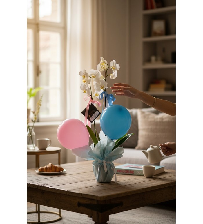 Yeni doğan ikiz bebekleri kutlamanın en zarif yolu: 2’li Beyaz Orkide İkiz Bebek aranjmanı. Saf beyaz orkideler, özel tasarım seramik saksısında özenle hazırlanır ve sevdiklerinize hem şık hem kalıcı bir hediye sunar.