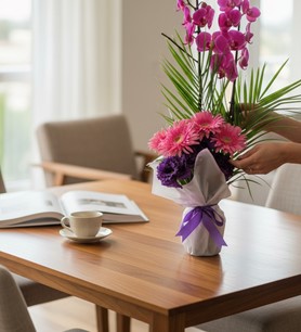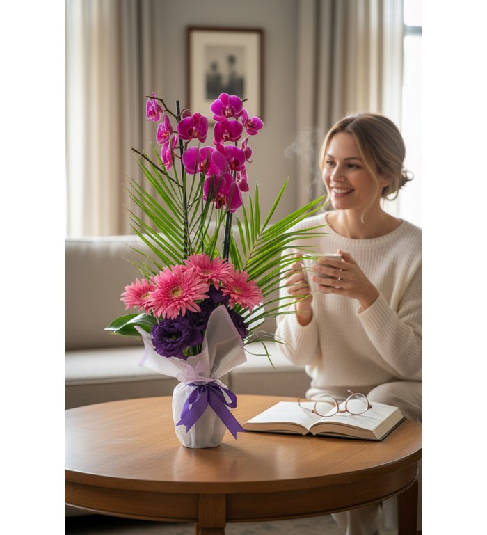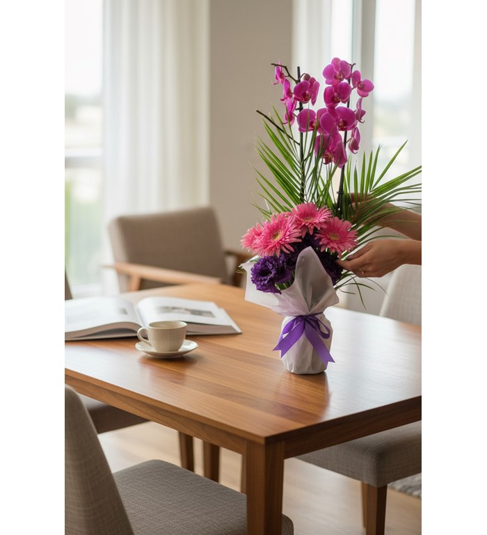 Ürünlerde kullanılan çiçekler özenle seçilerek hazırlanır. 2’li Mor Orkide Aranjmanı, şıklık ve zarafeti bir araya getiren özel bir tasarımdır. Mor orkidenin asil duruşu, sade ve modern sunumla birleşerek hem ev hem ofis dekorasyonuna uyum sağlayan estetik bir hava yaratır. Doğum günü, tebrik, açılış veya özel kutlamalarda uzun ömürlü ve değerli bir hediye seçeneği olarak öne çıkar.