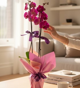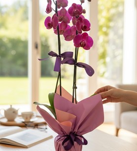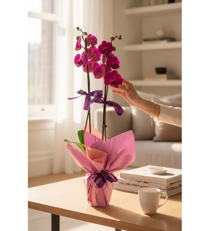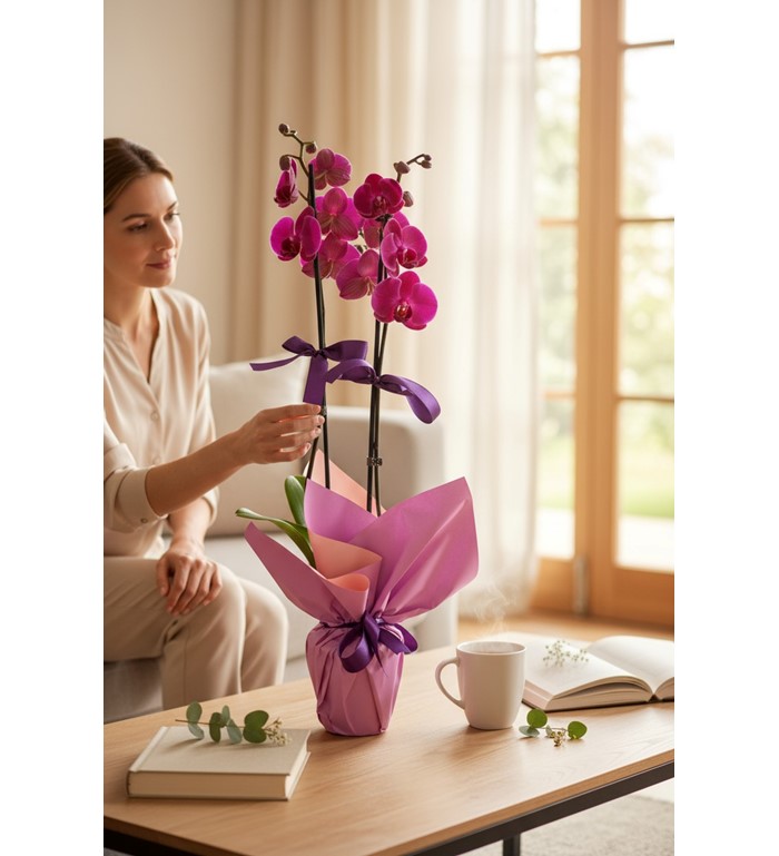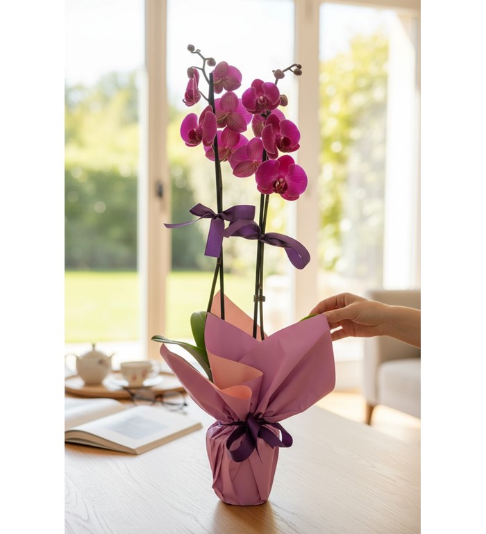 Zarafetin ve şıklığın simgesi mor orkide, özel günlerinize eşlik etmek için mükemmel bir tercihtir. Bu zarif 2’li mor orkide seti, yaşam alanlarınıza şıklık katarken, sevdiklerinize uzun süre kalıcı bir güzellik sunar. Mor orkide, büyüleyici rengi ve zarif yapısıyla hem görsel olarak hem de duygusal anlamda özel bir hediye alternatifi oluşturur.