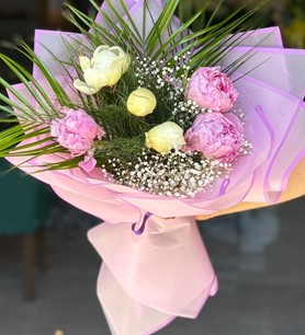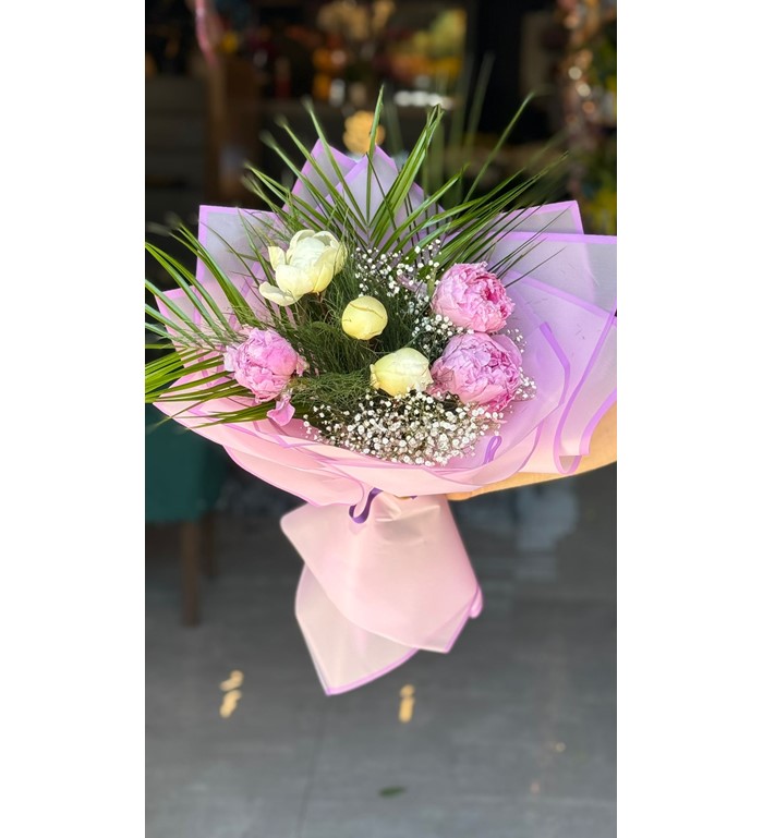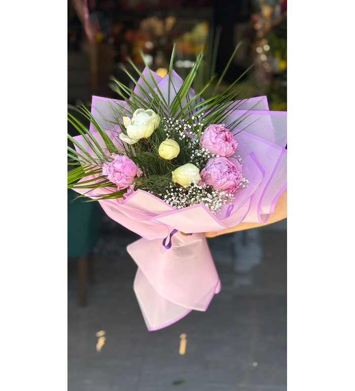 Zarafetin ve sevginin en güzel ifadesi olan bu özel buket, 3 pembe ve 3 beyaz şakayığın büyüleyici uyumuyla hazırlanmıştır. Pembe şakayıkların romantik ve duygusal anlamı, beyaz şakayıkların saflığı ve zarafetiyle birleşerek sevdiklerinize unutulmaz bir his bırakır. Doğum günü, yıldönümü, teşekkür ya da “seni seviyorum” demek için anlamlı ve şık bir seçimdir.