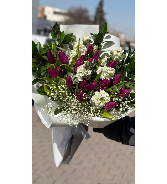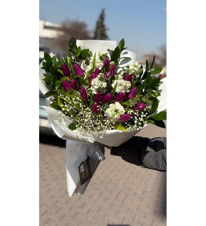 Zarafetin en canlı hali olan 30 adet ithal fuşya lale, mis kokulu şebboylar ile birleşerek büyüleyici bir harmoni oluşturuyor. "Premium" koleksiyonumuza ait bu özel tasarım; fuşyanın enerjisini şebboyun klasik dokusuyla birleştirerek sevdiklerinize unutulmaz bir jest yapmanızı sağlar. Doğanın en asil renklerini taşıyan bu buket, modern paketleme teknikleriyle zenginleştirilerek sunulmaktadır.