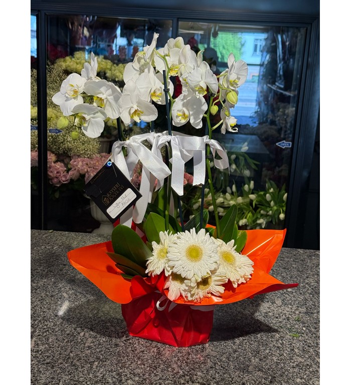 Göz alıcı zarafetiyle bulunduğu ortama şıklık katan 4 dallı orkide aranjmanı, özel günlerin en prestijli hediyelerinden biri. Uzun ömürlü çiçekleriyle dikkat çeken bu aranjman; tebrik, kutlama, açılış ya da yeni iş gibi anlamlı anlar için harika bir tercihtir. Beyaz tonların asil duruşu ve gösterişli yapısıyla her bakıldığında büyüleyici bir etki yaratır.