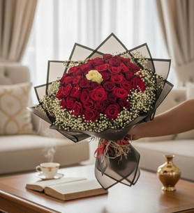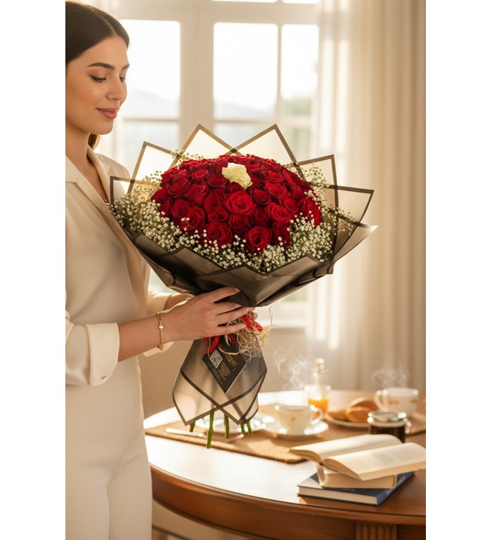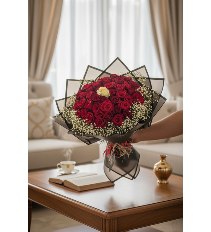 40 adet kırmızı gülün yoğun duygusunu, aralarında yer alan 1 beyaz gülün zarif anlamı tamamlar. Kayseri Çiçek Evi olarak özenle hazırlanan bu şık aranjman, sevginizi en etkileyici şekilde ifade etmek istediğiniz tüm özel anlar için mükemmel bir tercihtir.