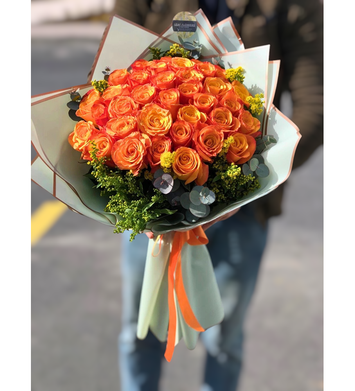 Turuncunun enerji ve coşkusunu zarif bir dokunuşla buluşturan bu buket, sevdiklerinize neşe ve mutluluk armağan etmek için harika bir seçim! Canlı renkleriyle dikkat çeken 40 turuncu gül, ister doğum günü, ister teşekkür hediyesi olarak unutulmaz bir etki bırakır.