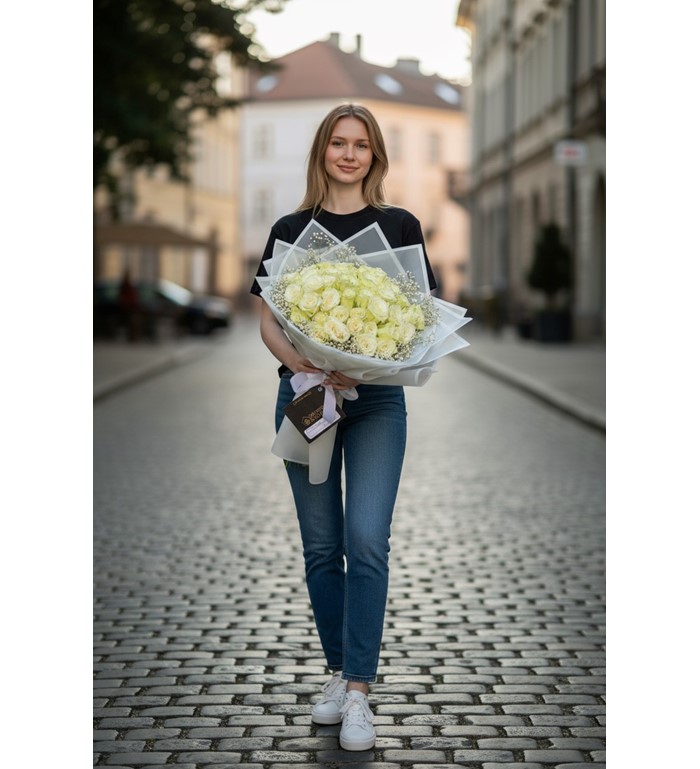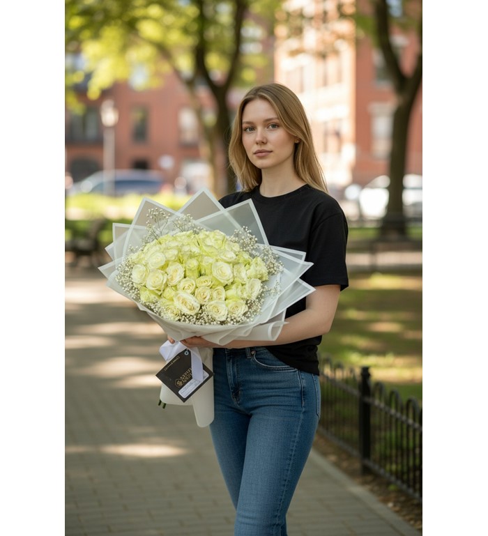 Saflığın ve şıklığın en zarif hali olan 41 İthal Beyaz Gül Buketi, incelikli bir hediye arayanlar için özel olarak hazırlanmıştır. Tamamen ithal beyaz güllerle tasarlanan bu asil buket, duru görünümüyle hem romantik hem de zarif bir hediye alternatifi sunar.