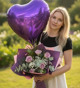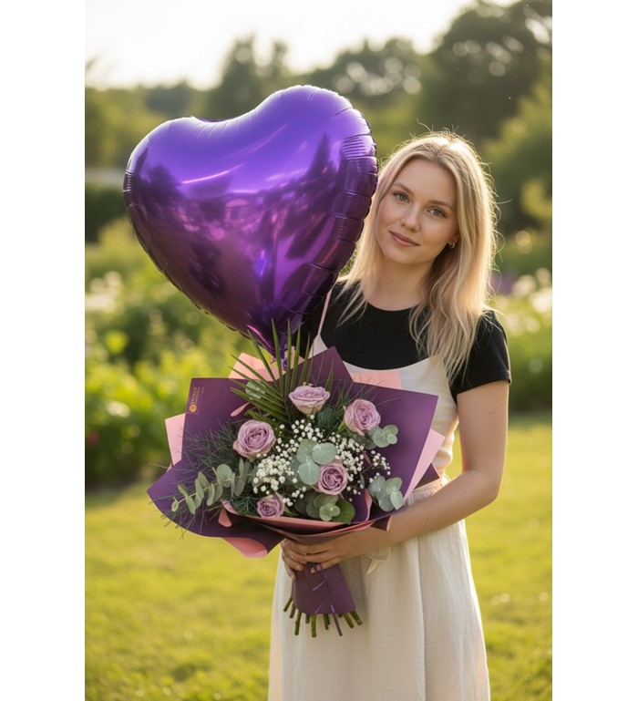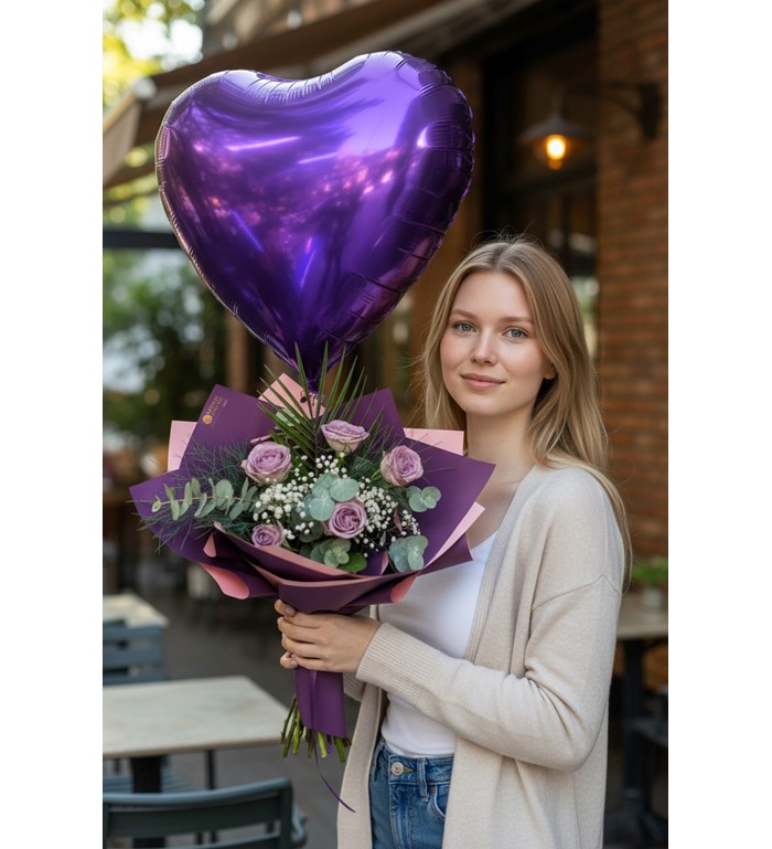 Doğum günü, sevgililer günü, yıldönümü veya romantik sürprizler için ideal bir hediye seçeneğidir. Lila güllerin zarafeti ve kalp balonun şıklığıyla duygularınızı en güzel şekilde ifade edebilirsiniz.