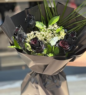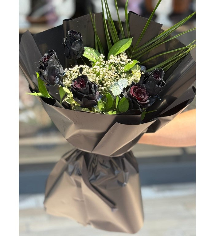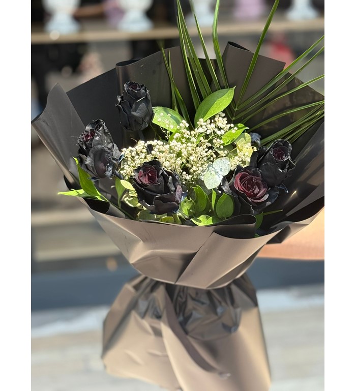 Gizem, asalet ve derin duyguların sembolü olan siyah güller, bu özel bukette şıklıkla buluşuyor. 5 adet ithal siyah gül ile hazırlanan bu etkileyici buket, güçlü mesajlar vermek isteyenler için ideal. Sıradan çiçeklerden farklı bir tercih arayanlara özel, karanlık tonların büyüsünü yansıtan sofistike bir aranjman.