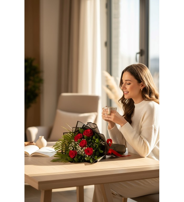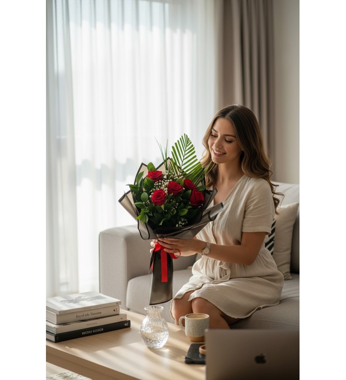 5 adet taze kırmızı gül ile hazırlanan bu mini buket, duygularınızı küçük ama anlamlı bir jestle göstermek isteyenler için ideal bir seçimdir. Kırmızı güllerin tutkulu sembolizmi, özenli paketleme ile birleşerek romantik bir hediye haline gelir.