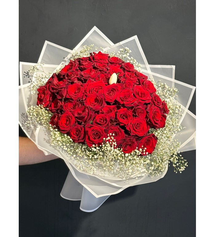 50 Kırmızı Gül 1 Beyaz Gül Buketi