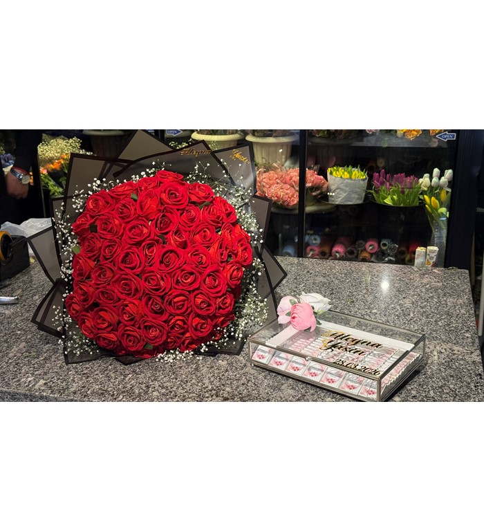 Görkemli Sayı, Maksimum Etki: 60 adet gülün yarattığı dolgun görünüm ve 105 adet çikolatanın sunduğu cömert lezzet şöleni.