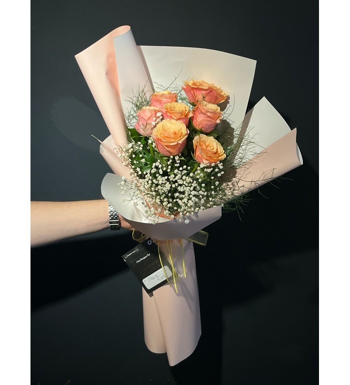 7 İthal Turuncu Gül Buketi | Kayseri Çiçek Evi