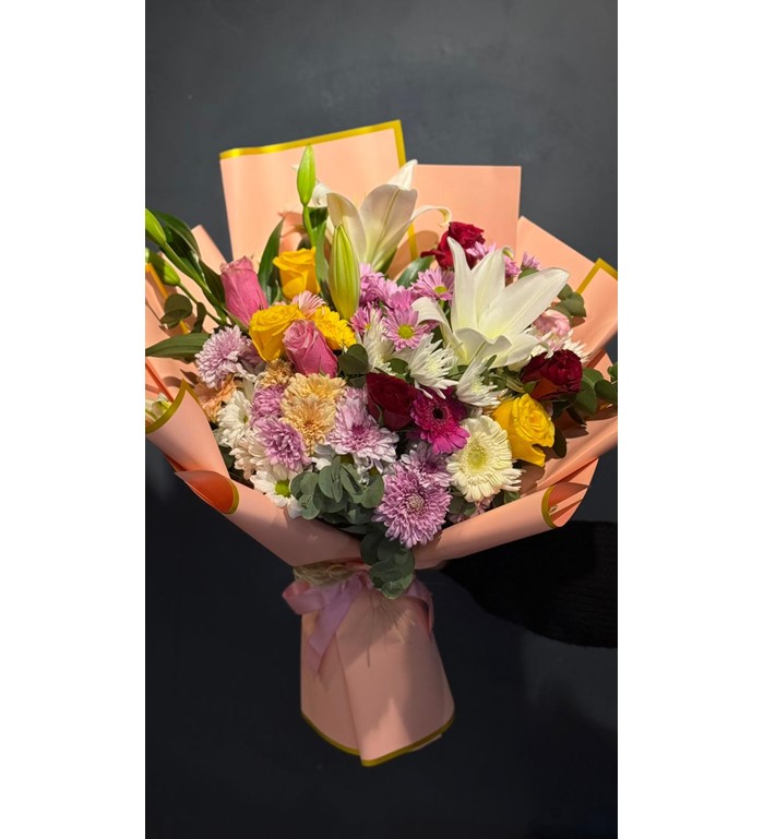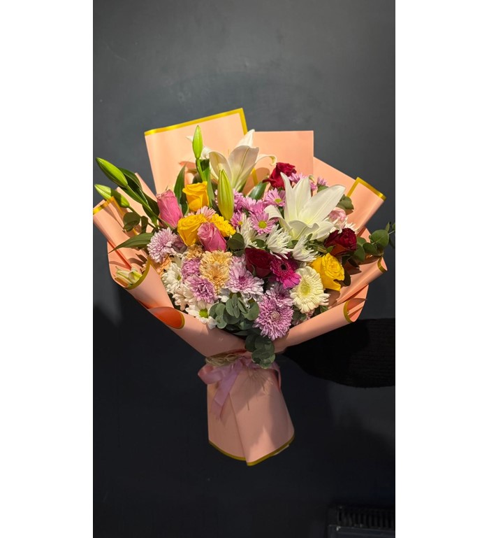 Canlı renkleri ve zarif tasarımıyla öne çıkan 7 Renkli Gül, Lilyum ve Mevsim Buketi, sevdiklerinize neşe ve mutluluk ulaştırmak için özenle hazırlanır. Renkli güllerin enerjisi, lilyumların ferah ve şık duruşu ile mevsim çiçeklerinin doğal uyumu bir araya gelerek göz alıcı bir buket oluşturur.