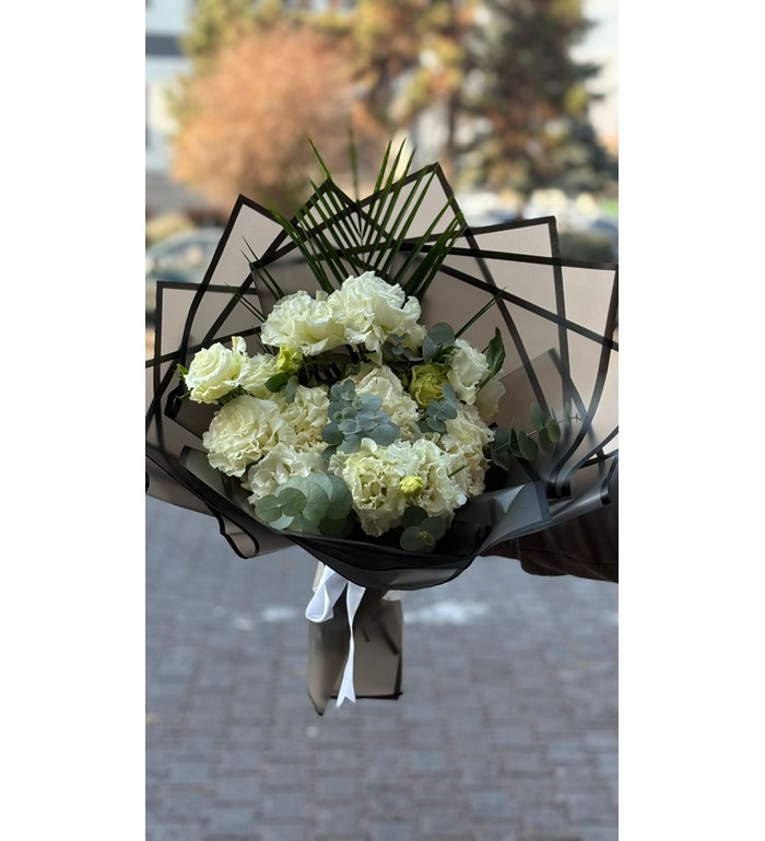 Beyaz Lisyantus Buketi – Siyah Paket, sadeliğin ve zarafetin en şık buluşmasını temsil eder. Saf beyaz lisyantus çiçekleri, modern siyah ambalaj ile hazırlanarak hem klasik hem de sofistike bir görünüm sunar.