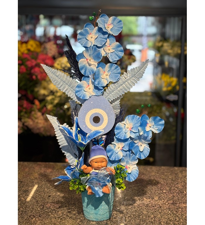 Sevgiyle hazırlanan zarif bir karşılama: Erkek Bebek Yapay Çiçek (4) 🌐 Online sipariş için: www.kaysericicekevi.com