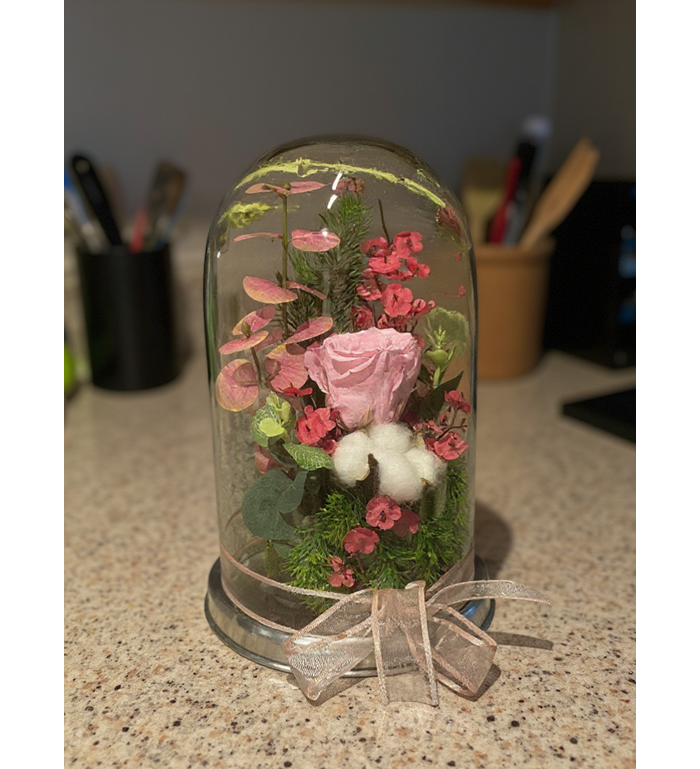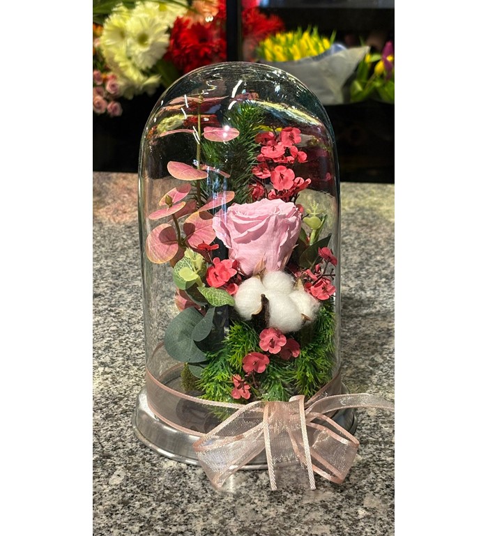 Önemli Not: Ürünlerimizde kullanılan pembe solmayan güllerin kafa büyüklükleri ve fanus içerisindeki yardımcı dekoratif materyaller (doğal yosun, kuru bitkiler), stok durumuna ve ürünlerin doğal yapılarına bağlı olarak küçük farklılıklar gösterebilir. Ancak her zaman pembe solmayan gülün kalitesine ve fanus konseptine sadık kalınarak, en şık şekilde el işçiliğiyle hazırlanmaktadır.