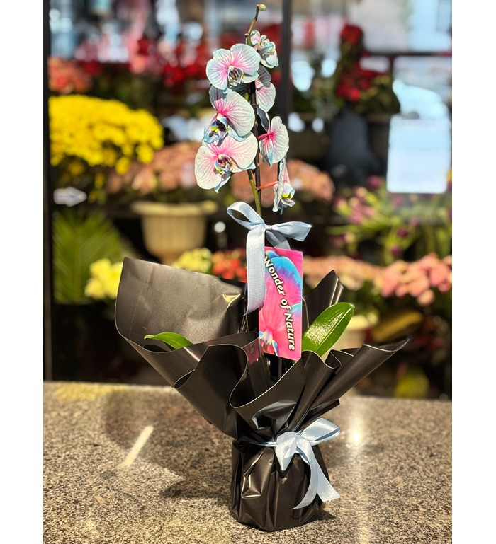 Gökkuşağının büyüleyici renklerini zarif bir orkideyle birleştiren bu eşsiz tasarım, sevdiklerinize hem estetik hem de anlamlı bir hediye sunmanın mükemmel bir yoludur. Her bir yaprağı adeta sanat eseri gibi görünen tekli gökkuşağı orkidemiz, özel anlarınız için unutulmaz bir dokunuş sağlar.