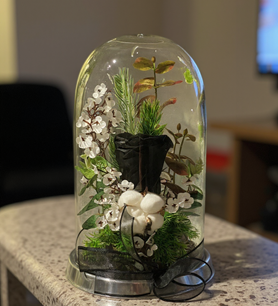 Zarif Detaylar: Fanus zeminindeki doğal yosunlar ve enerji veren dekoratif taşlarla zenginleştirilmiş minimal bir dünya.