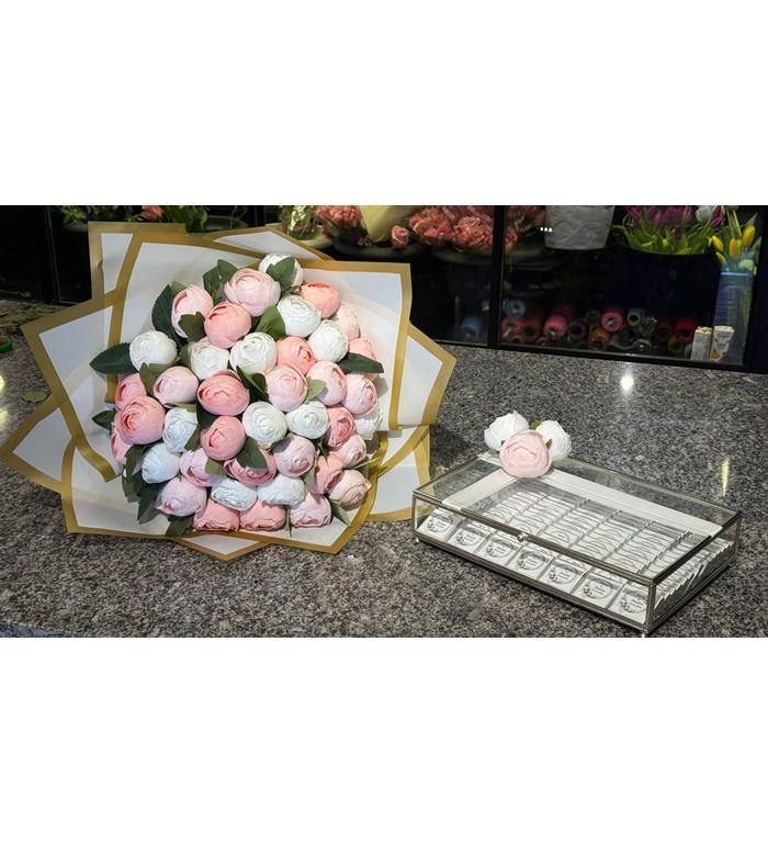 Hayatınızın en özel imzasını atmaya hazırlanırken, bu büyük günü unutulmaz kılacak bir ihtişamla tanışın! "Sonsuz Başlangıç" seti, merasimlerinize asalet katmak için gerçek dokulu 50 adet birinci sınıf yapay şakayıktan oluşan dev bir buket ile prestijli cam kutu içerisinde sunulan 105 adet madlen çikolatayı bir araya getiriyor.