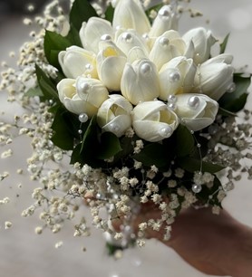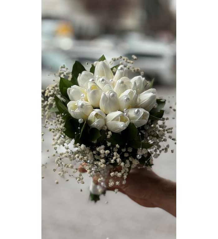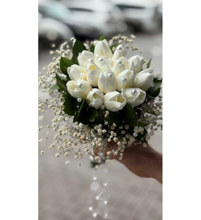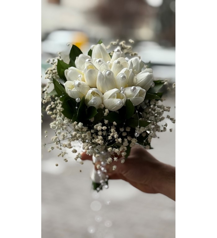 Islak lale gelin eli buketi; doğallığı, sadeliği ve zarif şıklığı bir araya getiren modern bir gelin buketidir. Özel “ıslak görünüm” tekniğiyle hazırlanan laleler, tazeliğini yeni toplanmış hissiyle yansıtır. Abartıdan uzak ama etkisi güçlü bu buket; sade gelinlikler, nikâh törenleri ve minimalist düğün konseptleri için kusursuz bir tamamlayıcıdır. Doğal güzelliğiyle fotoğraflarda çok zarif bir duruş sunar.