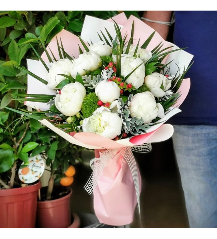 Doğanın zarafetini ve saflığını temsil eden beyaz şakayıklarla hazırlanmış bu özel buket, duygularınızı ifade etmenin en anlamlı yollarından biri. 10 adet özenle seçilmiş ithal beyaz şakayık, dolgun yapıları ve yumuşak dokularıyla göz alıcı bir güzellik sunar.