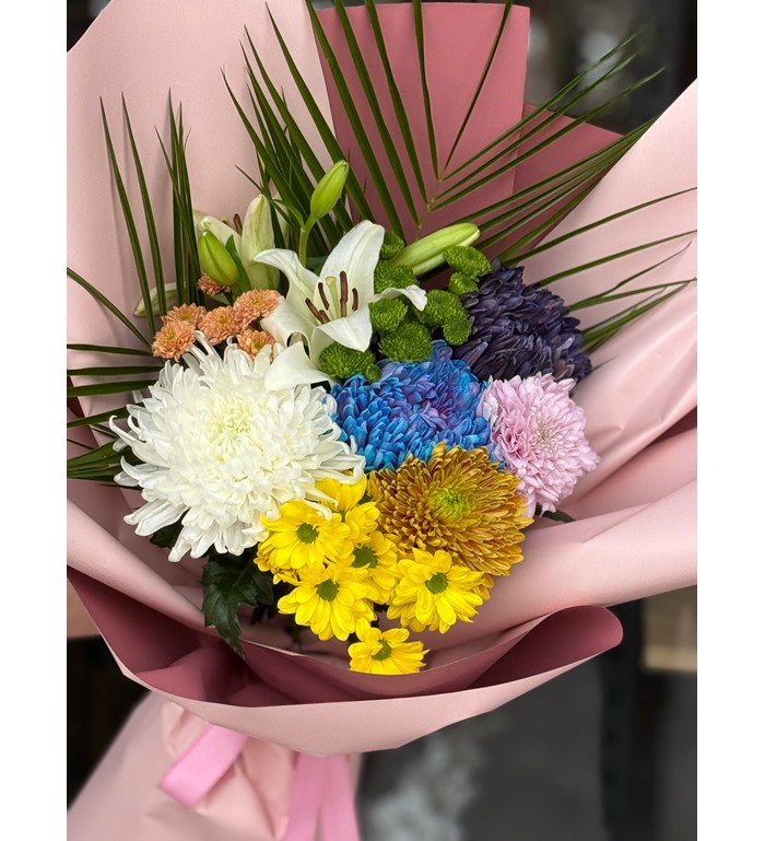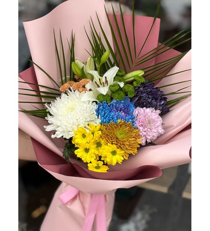 Zarafetiyle göz kamaştıran bu özel buket, beyaz lilyumların asaleti ile ithal Anastasia çiçeklerinin büyüleyici güzelliğini bir araya getiriyor. Canlı renklerin ve gösterişli çiçeklerin birleşimiyle hazırlanan bu biçme buketi, sevdiklerinize unutulmaz bir sürpriz yapmak için ideal bir tercih.