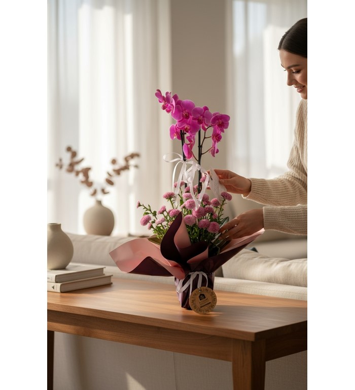 Doğum günü, yıldönümü, tebrik ya da özel kutlamalar için ideal olan mor orkide aranjmanı, hem klasik hem de modern tarzı sevenler için mükemmel bir tercihtir. Her bakışta huzur, her detayında zarafet taşır.