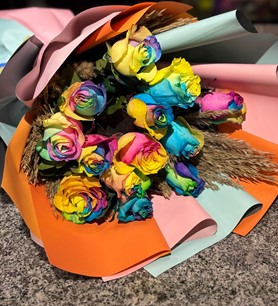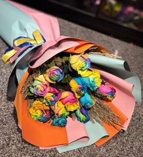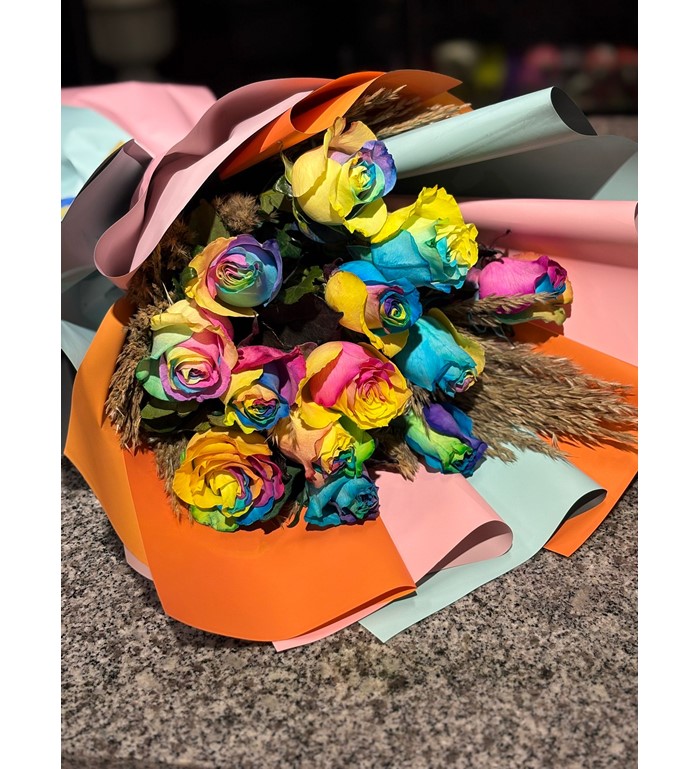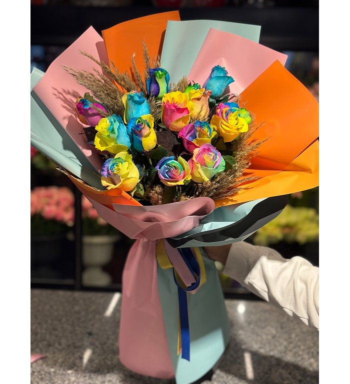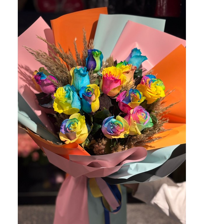 Renkli güllerin her biri, farklı duyguları ve anlamları ifade ederken, bu buket tüm renklerin uyumunu yakalayarak özel bir atmosfer yaratır. İthal Gökkuşağı Gül Buketi, doğum günleri, özel kutlamalar, sevgililer günü veya sadece sevdiklerinize neşeli bir sürpriz yapmak için mükemmel bir hediye seçeneğidir.