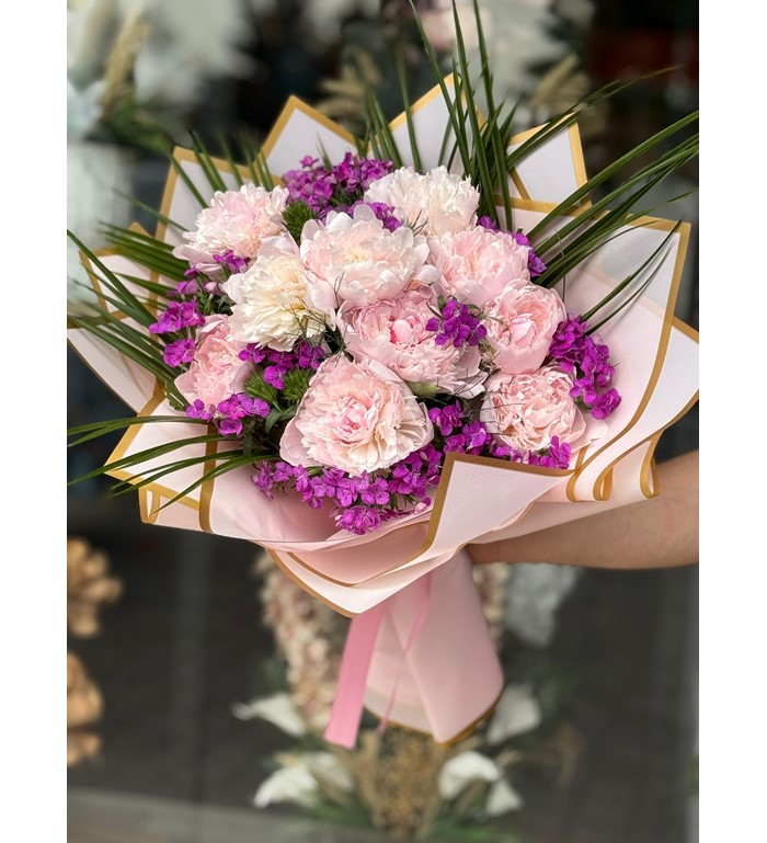 İthal Pembe Şakayık Buketi, zarafetin ve zarifliğin simgesi olan pembe şakayıkların en taze ve en güzel örneklerinden oluşan göz alıcı bir çiçek aranjmanıdır. Şakayık, yumuşak yaprakları ve büyüleyici kokusuyla bilinir ve her ortamda dikkat çeker. Pembe renk tonları, şefkat, nezaket ve mutluluğu simgeler, bu nedenle bu buket, sevgi ve takdir duygularını ifade etmek için mükemmel bir seçimdir.