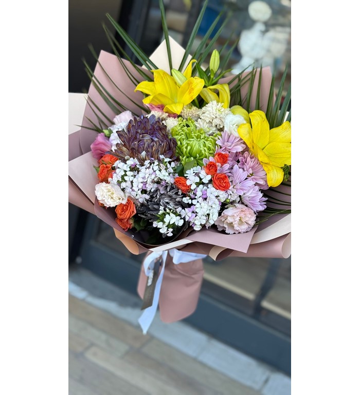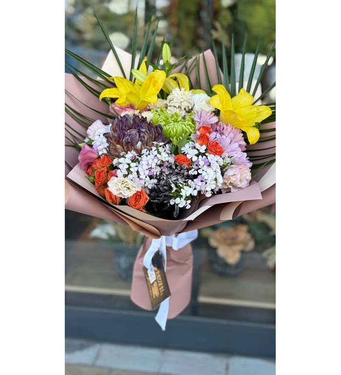 Birbirinden özel ithal çiçeklerle hazırlanan bu renkli buket, enerjisiyle bulunduğu her ortama neşe katıyor. Romantik anlarda, doğum günlerinde ya da "seni düşündüm" demek için kusursuz bir seçim.