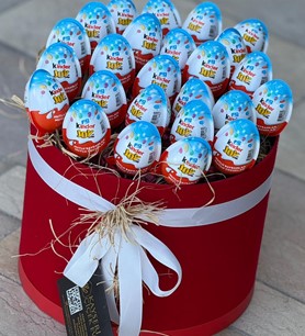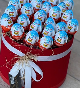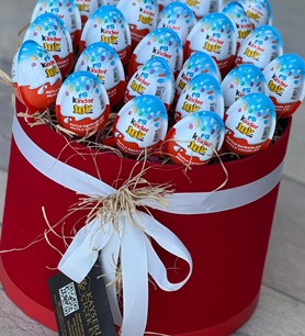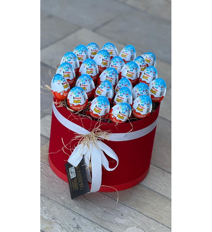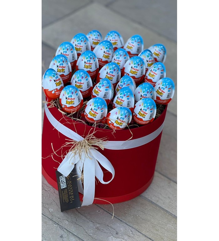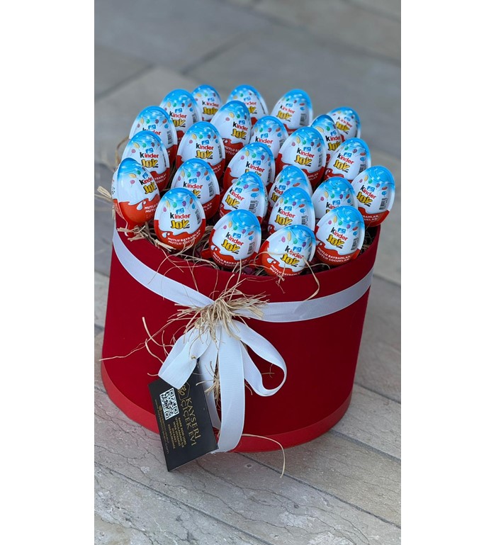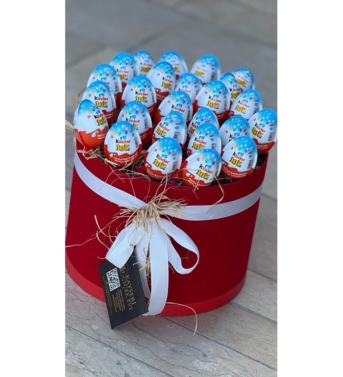 Mutluluğu kutuya sığdırdık! Klasik hediye seçeneklerinin dışına çıkmak ve sevdiklerinize çocuksu bir neşe armağan etmek istiyorsanız, bu sürpriz dolu tasarım tam size göre. Şık, kırmızı silindir kutu içerisinde, doğal saman rafyalar üzerine özenle yerleştirilmiş çok sayıda sürpriz yumurta, hem görsel bir zenginlik hem de heyecan dolu bir açma deneyimi sunuyor.