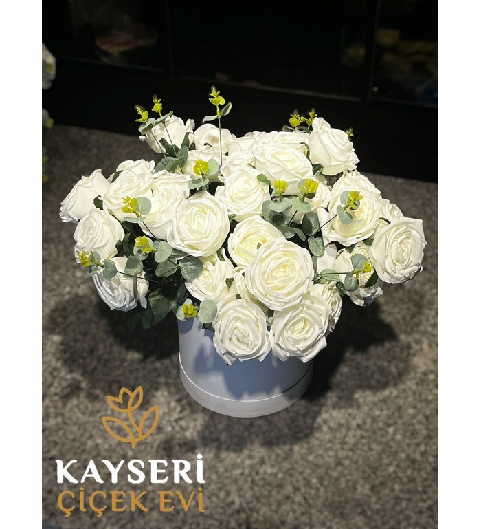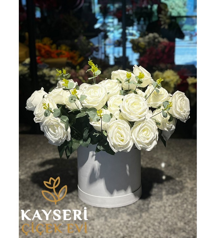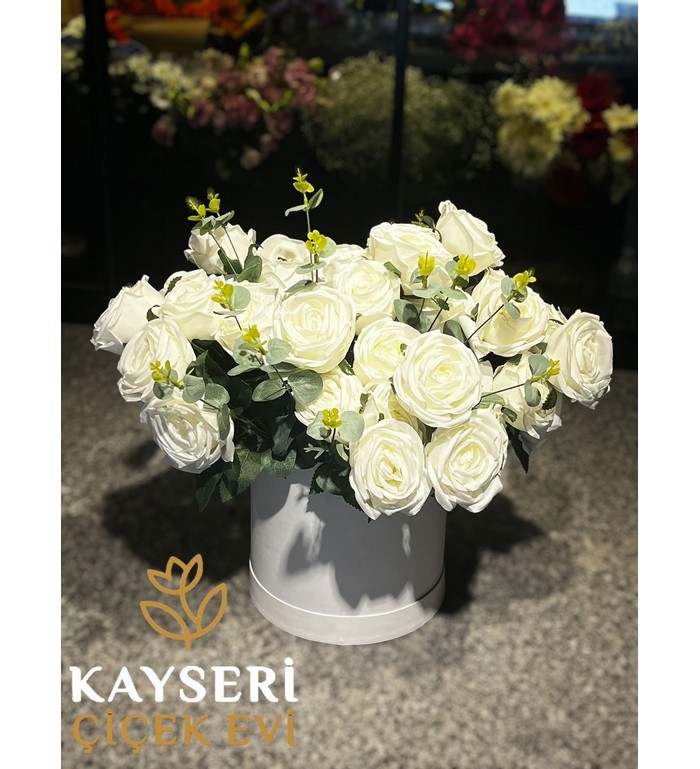 Kutuda Yapay 45 Beyaz Gül | Kayseri Çiçek Evi