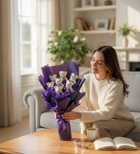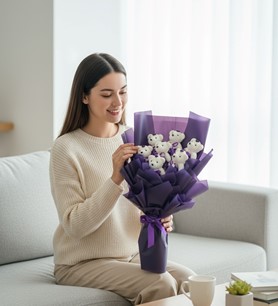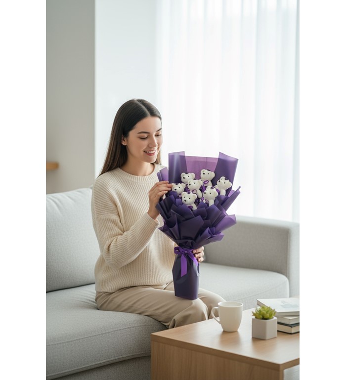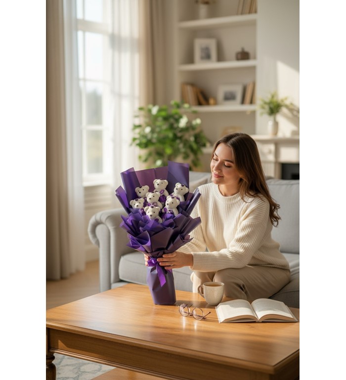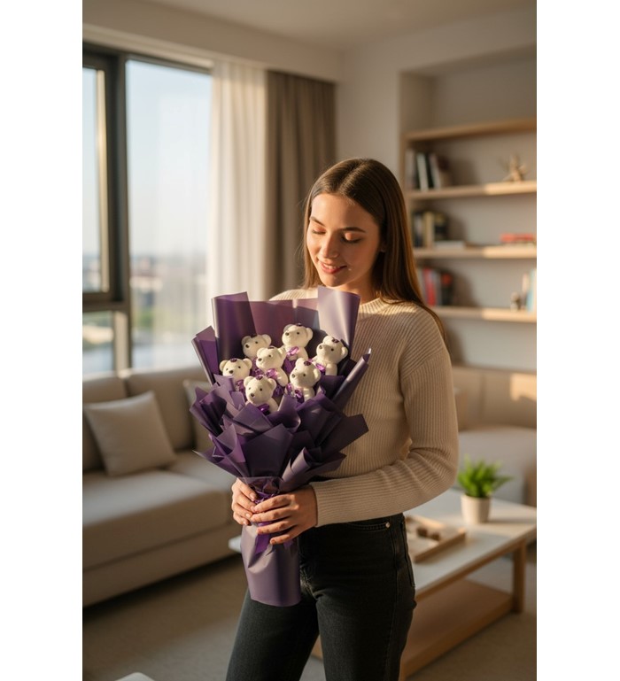 Işıltılı detayları ve morun büyüleyici tonlarıyla hazırlanan Ledli Ayıcık Buketi Mor, romantik ve sevimli bir hediye seçeneğidir. İçerisindeki led ışıklar gece parlayarak bukete büyüleyici bir hava katar. Özellikle sevgiliye, doğum günü kutlamalarına veya özel gün sürprizlerine anlam katan bu aranjman, hem zarif hem de modern bir görünüme sahiptir.