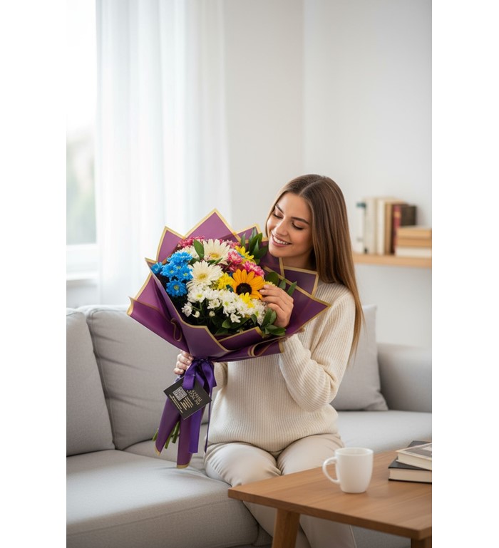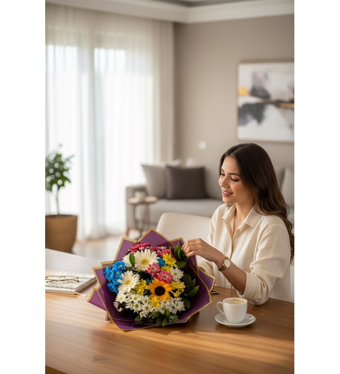 Mevsime özel çiçeklerden özenle hazırlanmış bu canlı buket, sıcak duyguları en doğal haliyle iletmek isteyenler için harika bir tercihtir. Her biri tazelik ve doğallık hissi veren çiçekler, günlük sürprizler, doğum günleri, teşekkür etmek veya "Seni düşündüm" demek için ideal bir seçimdir.
