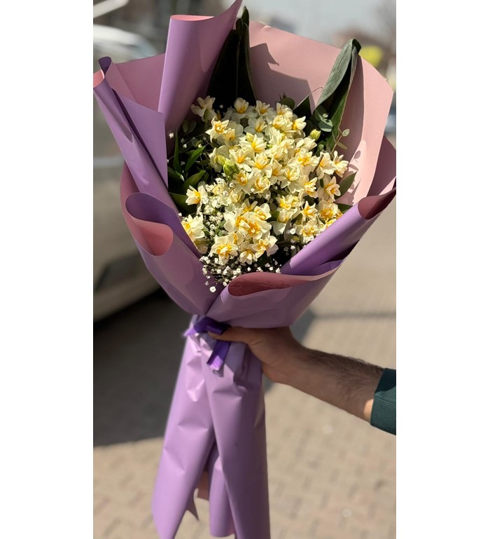 Mis kokusu ve zarif görünümüyle 25 dal nergis çiçeği, lila mor özel ambalaj ile şık bir tasarım haline getirildi. Baharın en sevilen çiçeklerinden nergis; saflığı ve tazeliği simgeler. Hem enerjik hem de zarif bir hediye alternatifi arayanlar için özel olarak hazırlanır.