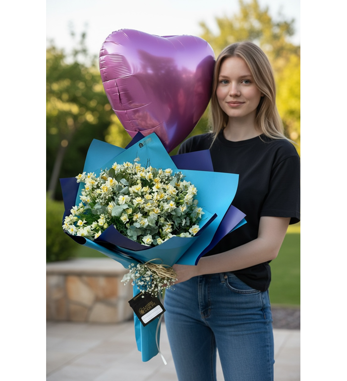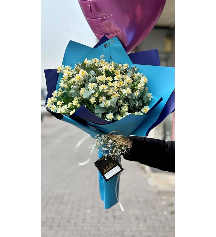 Kışın habercisi, zarafetin simgesi nergis çiçekleriyle hazırlanan bu özel buket; sadeliği sevenler için eşsiz bir seçenektir. Ferah kokusu ve asil duruşuyla bulunduğu ortama tazelik katan Nergis Buketi, sevdiklerinize içten ve anlamlı bir jest yapmak isteyenler için idealdir.