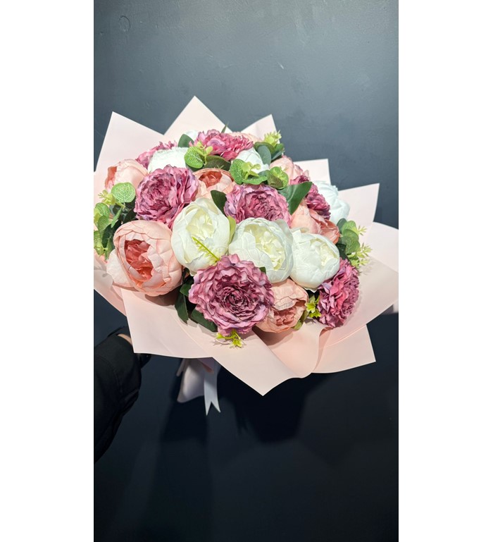 Baharın en sevilen çiçeği şakayıkları, şimdi 36 dalın yarattığı muazzam dolgunlukla ve hiç solmayan bir formda keşfedin! "Peony Symphony", her biri özenle tasarlanmış katmerli yaprakları ve soft renk geçişleriyle gerçek şakayık estetiğini yaşam alanlarınıza taşıyor. Birinci sınıf yapay materyalden üretilen bu devasa buket, taze çiçeklerin güzelliğini zamanın ötesine taşıyarak ömür boyu sürecek bir hatıra sunuyor.