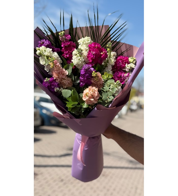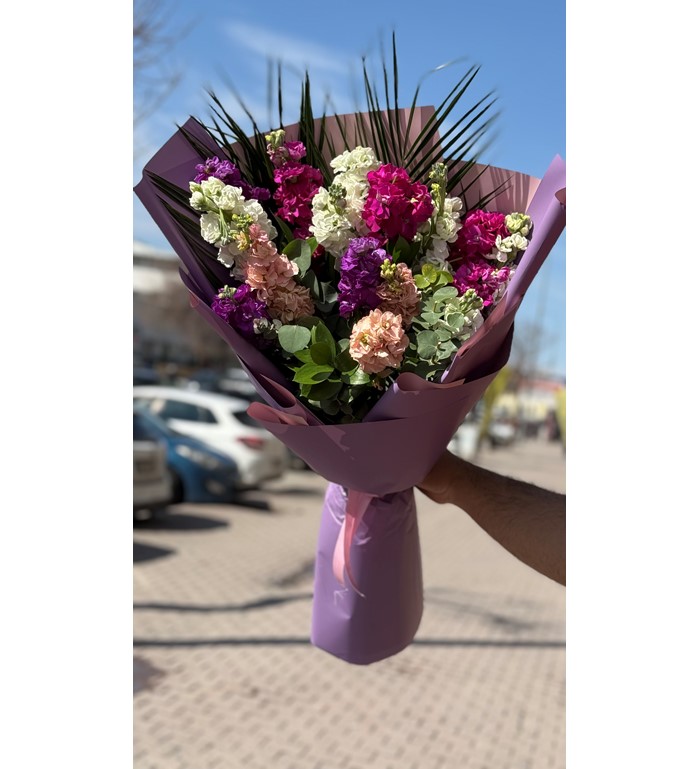 Renkli şebboylardan özenle hazırlanan bu buket; enerjik, ferah ve samimi bir etki yaratır. Mis gibi kokusuyla bulunduğu ortamı sarar, renkleriyle ruhu canlandırır. Doğum günü, geçmiş olsun, teşekkür ya da içinden geldiği için çiçek göndermek isteyenler için hem zarif hem de içten bir seçimdir.