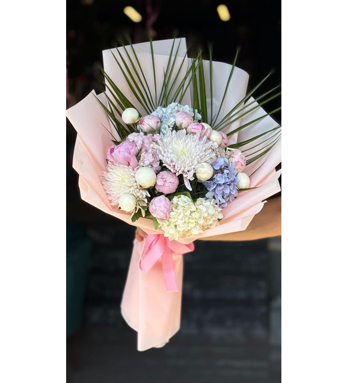 Renklerin ve zarafetin buluştuğu bu özel buket, gösterişli şakayıklar, asil Anastasya çiçekleri ve tamamlayıcı ithal çiçeklerle hazırlanmıştır. Romantik bir atmosfer sunan bu aranjman; doğum günü, yıldönümü, Sevgililer Günü veya sadece “seni düşünüyorum” demek için ideal bir tercihtir. Canlı renkleri, dolgun formu ve şık tasarımıyla duygularınızı en estetik şekilde ifade eder.