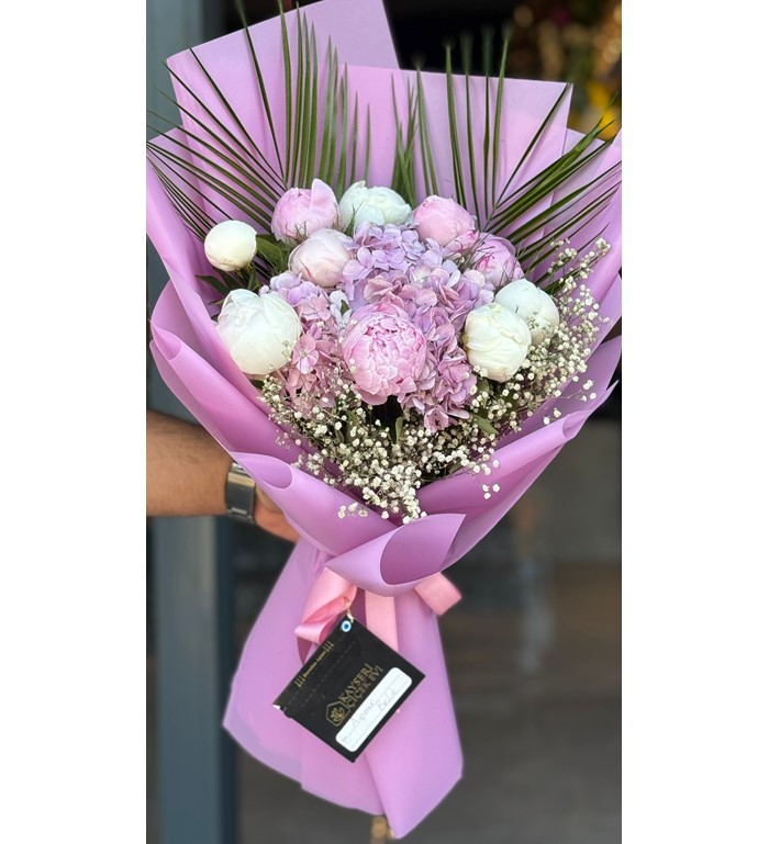 Pembe, beyaz, şampanya gibi soft tonlarda hazırlanan bu buket, sade ama etkileyici bir duruşa sahiptir. Şık ambalajı ve taze çiçeklerin kokusuyla kalıcı bir iz bırakır.