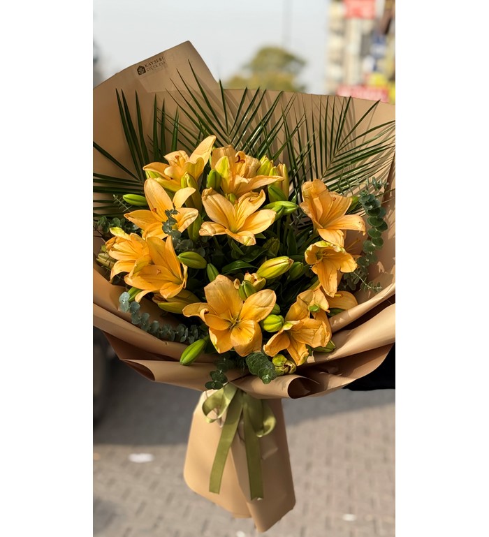 Kayseri Çiçek Evi güvencesiyle hazırlanan Sarı Lilyum Buketi, taze ve özenle seçilmiş çiçeklerle şık ambalajı bir araya getirir.
