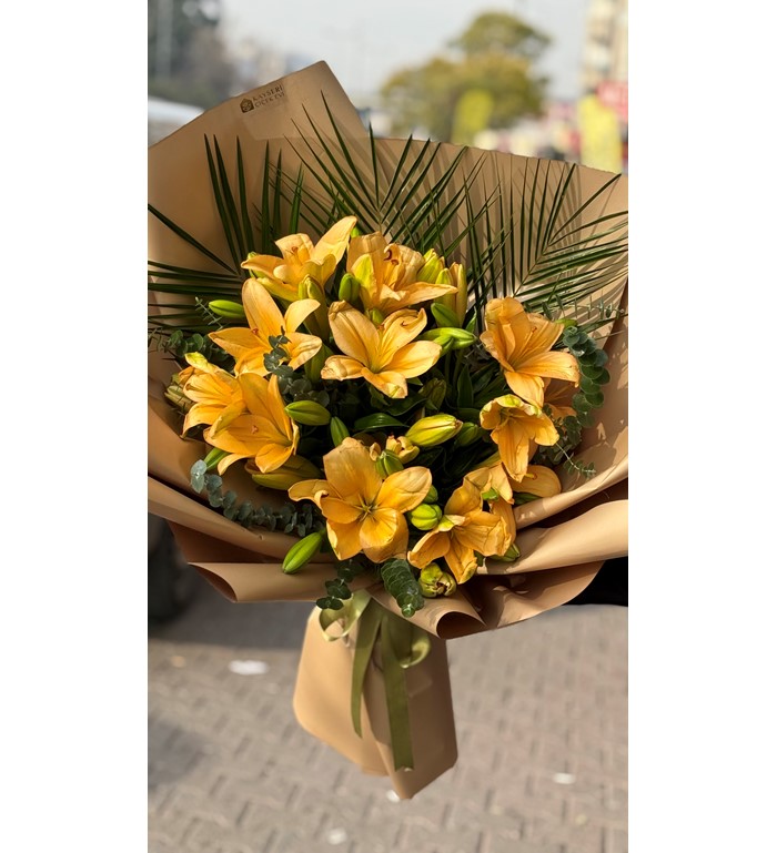 Sarı lilyum buketi; mutluluğu, enerjiyi ve içten duyguları zarif bir şıklıkla yansıtır. Canlı sarı tonlarıyla bulunduğu ortama ferahlık katan bu özel buket; doğum günü, teşekkür, geçmiş olsun ya da sevdiklerinize içinizden gelen bir sürpriz yapmak için ideal bir seçimdir.