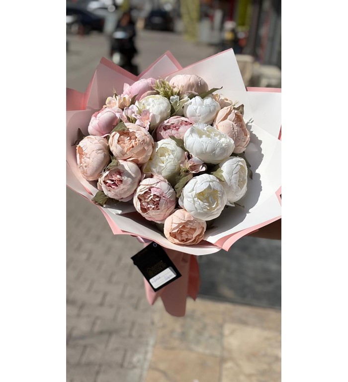 Baharın en nadide çiçeği şakayıkların zarafeti, şimdi zamanın ötesine geçiyor! "Eternal Peony", gerçek şakayık dokusunu ve formunu aratmayan, birinci sınıf yapay malzemeden üretilmiş 20 adet dolgun şakayıktan oluşur. Bu özel buket, taze çiçeklerin güzelliğini taşırken, asla solmayan yapısıyla sevdiklerinizin en güzel anılarını ve evlerinin en şık köşesini ömür boyu süsler.